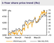 - Navin is engaged in related-party transactions with subsidiary NFASL, for the sale/purchase of goods. It has invested in preference share of the same entity and received repayment of inter-corporate deposits. Navin continues to provide material corporate guarantees of ~Rs17bn, as of Mar-25.