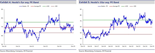 Nestle India’s 2QFY26 earnings print was ahead of our/Street’s expectation, driven by betterthan-envisaged domestic revenue performance (double-digit growth after 7 quarters). Revenue growth of c.11% was ahead of our/Street estimates by c.5-7%, led by volume growth (we estimate c.7%). Confectionary & beverage continued to clock high double-digit growth. Prepared dishes surprised positively with strong double-digit growth (double-digit volume growth in Noodles) with portfolio intervention showing promising results. Performance in Milk & Milk products remains a mixed bag. Gross margin surprised negatively, down 220bps/70bps YoY/QoQ, impacted by input cost inflation. Commodity outlook is unchanged (expect softening in milk prices post the festive season, continued firmness in edible oil prices, and stabilisation in coffee prices), which, along with operating leverage, should lead to better profitability in 2H (vs. 1H) in our view. Clearly, the execution on revenue line is commendable considering the expectation of GST transition-led disruption in September. We raise our FY27/28 Sales/EBITDA est by c.2%; however, due to higher depreciation and net interest expense, EPS upgrade is marginal. Valuations at 67x/60x FY27/28E adequately capture the positives (earnings CAGR of 15% over FY26-28E). We roll forward to Dec’27E and maintain REDUCE rating with a revised TP of INR 1,250. With leadership change after a decade, the new MD’s strategic directions (on accelerating volumes/extracting cost efficiencies) and disclosure on new growth engines will be the key monitorable.