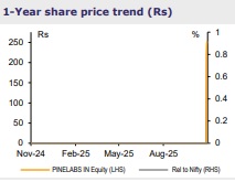 We believe Pine Labs faces two structural headwinds: the accelerating shift toward a QRbased acceptance ecosystem and the rising competitive intensity in merchant acquisition. At current valuations, Pine Labs trades at 28.1x FY28E EV/EBITDA and 56.4x P/E. Given its weaker competitive position vs peers, the maturing nature of its core enterprise POS business and ongoing market-share losses across both POS and affordability, we view risk-reward as unfavorable. We initiate coverage on Pine Labs with REDUCE and DCFbased TP of Rs210, implying a FY28E EV/EBITDA multiple of 24.2x.