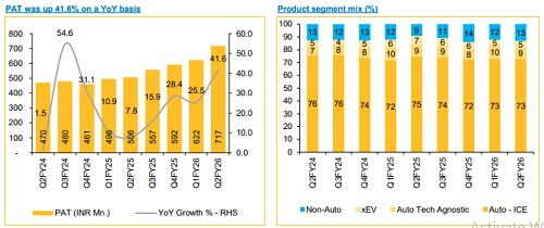 * APAT was up 41.6% YoY and up 15.3% QoQ to INR 717 Mn (vs CIE est. at INR 665 Mn).