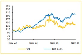 Operational Recovery Under Way amid Integration and Restructuring Efforts: SEL’s Q2FY26 performance reflects continued operational improvement and disciplined execution despite a challenging global backdrop. Excluding SCS, consolidated revenue and EBITDA grew 7.6% and 18.7% YoY, respectively, with margin at the upper end of the company’s guided range. The growth was driven by strong performance in the Suprajit Controls Division (SCD) and Domestic Cable Division (DCD). The Electronics Division also posted exceptional EBITDA expansion on the strength of customer diversification and improved product traction. However, we fear elevated corporate overheads, ongoing restructuring expenses and subdued export markets to continue to weigh on profitability.