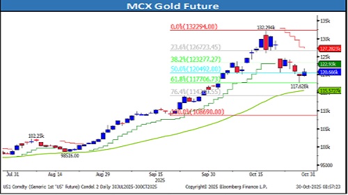• Intraday Trading Strategy: Sell Gold Mini Dec Fut at 120200-120225 SL 121050 Target 119380/118450