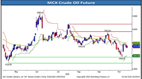 • Intraday Trading Strategy: Sell Crude Oil Nov Fut at 5375-5380 SL 5450 Target 5280/5250