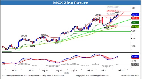 • Intraday Trading Strategy: Sell Zinc Nov Fut at 303.0-303.50 SL 306.8 Target 297.2/295.8.