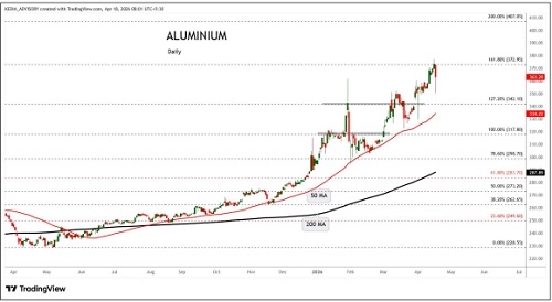Aluminium trading range for the day is 369.1-375.3.