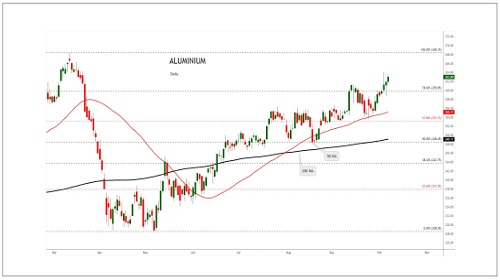 Aluminium gains tracking LME prices touched its highest in 16 months as available inventories declined.