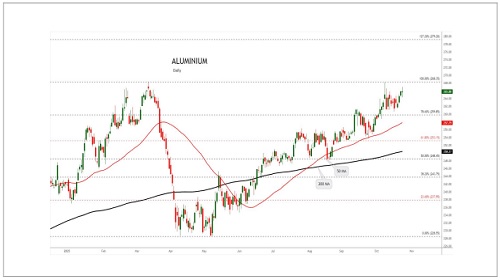 Aluminium trading range for the day is 263.5-270.9.