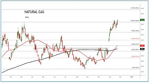 Naturalgas trading range for the day is 401.6-421.