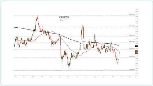 Sell Crude Oil Nov @ 5450 SL 5550 TGT 5350-5250. MCX - Kedia Advisory