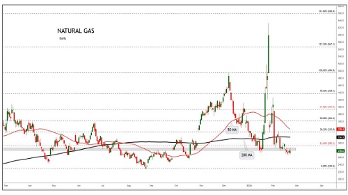 Average gas output in the Lower 48 states climbed to 108.6 bcfd so far in February, up from 106.3 bcfd in January.