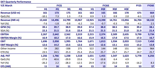 * EBIT margin for DET segment likely to be at 12.6%, up 60bp as the partial impact of wage hikes is now behind.