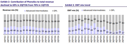 * EBIT margins for Advanced Intermediates/Phenolic contracted 390bp/630bp to 3.9%/8.6% in 2QFY26.