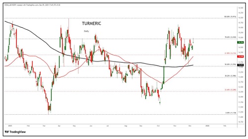 Turmeric gains as yields in Maharashtra, Andhra Pradesh and Karnataka have been affected due to rains.