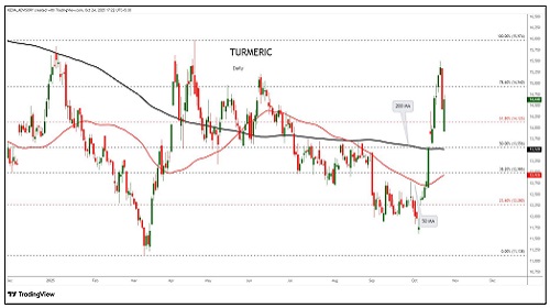 Turmeric trading range for the day is 13668-15280.