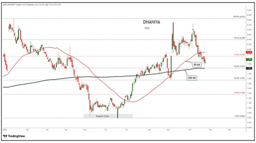 Dhaniya trading range for the day is 7924-8144.