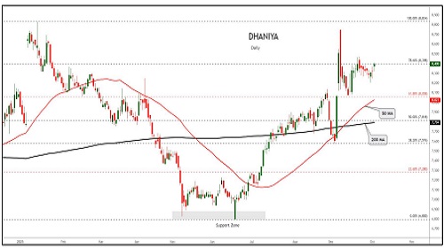 Dhaniya trading range for the day is 8312-8600.