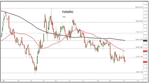 Turmeric gains as recent rainfall has caused damage to standing turmeric crops in major growing regions.