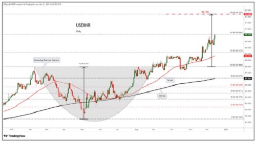 USDINR trading range for the day is 90.49-91.07.