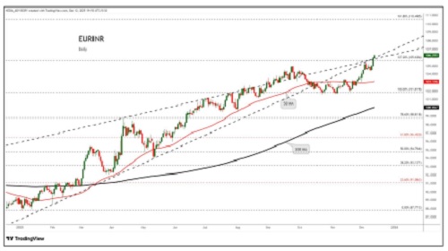 EURINR trading range for the day is 106.15-107.05.