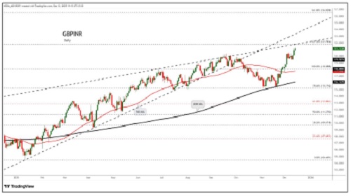 GBPINR trading range for the day is 120.91-121.89.