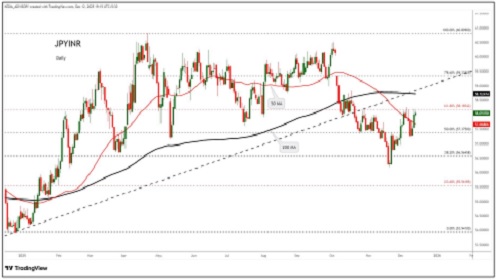 JPYINR trading range for the day is 57.82-59.42.