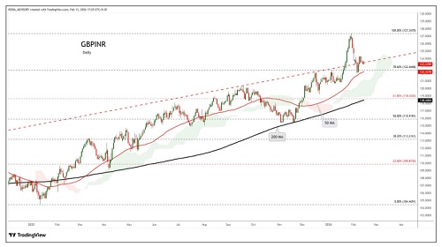 GBPINR trading range for the day is 122.85-123.87.