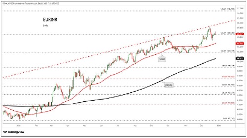EURINR trading range for the day is 105.49-106.29.