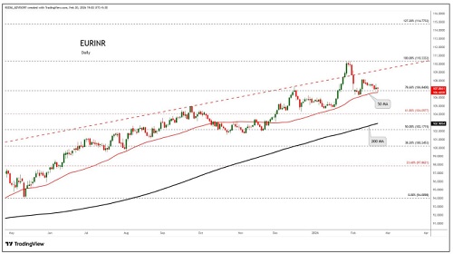 GBPINR trading range for the day is 121.74-123.72.