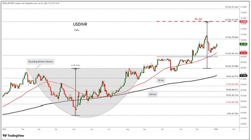 USDINR trading range for the day is 90.29-90.49.