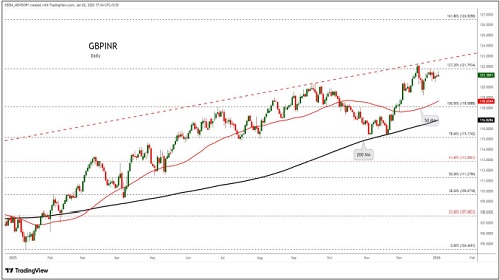 GBPINR trading range for the day is 120.92-122.08.