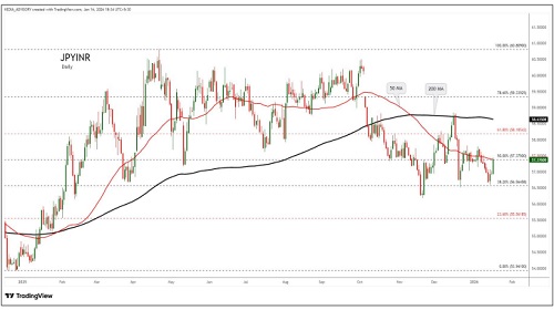 JPYINR trading range for the day is 57.49-58.07.