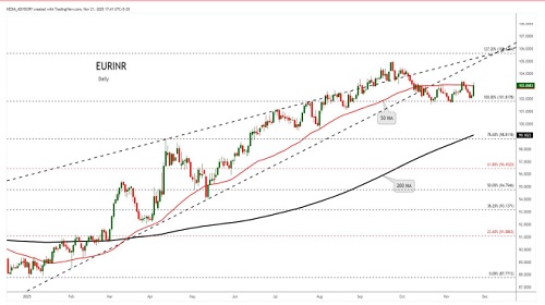 Euro rose amid weakness in Rupee and amid increasing bets for the Fed rate cut in December.