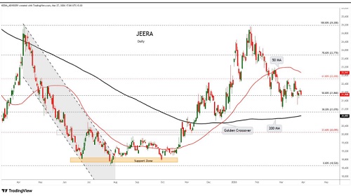 Sell Jeera APR @ 22000 SL 22300 TGT 21700-21500. NCDEX - Kedia Advisory