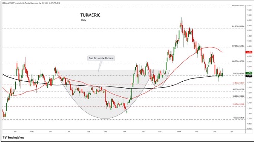 Turmeric trading range for the day is 14364-15136.