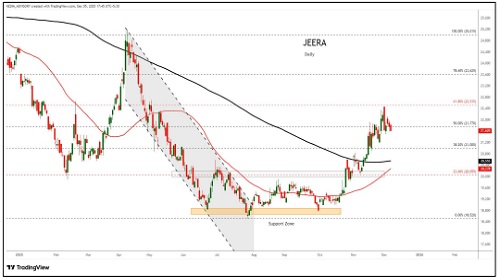 SELL JEERA DEC @ 21400 SL 21700 TGT 21100-20900. NCDEX
