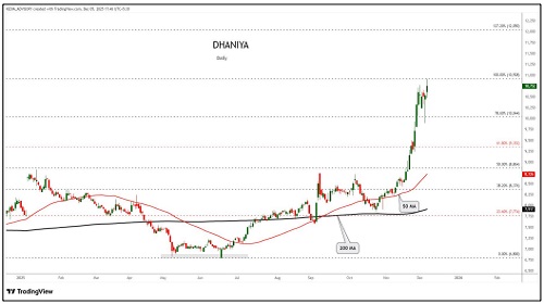 SELL DHANIYA DEC @ 10600 SL 10750 TGT 10400-10200. NCDEX