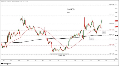 Dhaniya trading range for the day is 8660-9124.