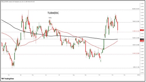 Turmeric trading range for the day is 13854-15214.