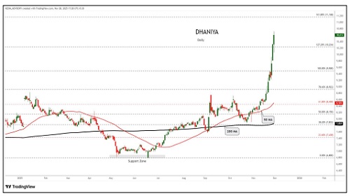 Dhaniya gains on short covering after prices dropped as sowing rose by 32.62 to 55,333 hectares compared to last year