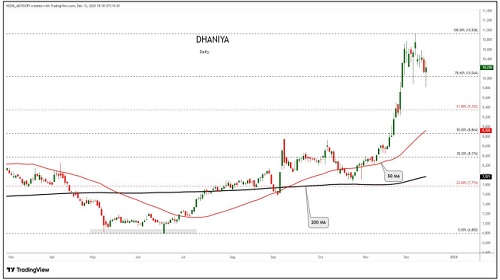 Dhaniya dropped on profit booking after prices seen supported as Dhaniya sowing seen at 102,947 hectares down by 0.80%.
