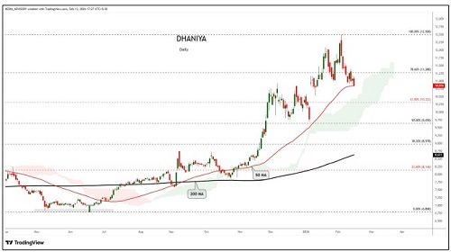 Dhaniya dropped on profit booking after prices surged driven by lower sowing and rising crop risks.