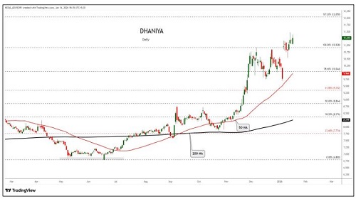 Dhaniya dropped on profit booking after prices gained as sowing seen at 125,510 hectares down by 3.78%.