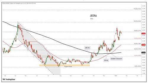 SELL JEERA MAR @ 23900 SL 24200 TGT 23600-23300. NCDEX - Kedia Advisory