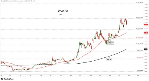 Dhaniya trading range for the day is 12932-13240.