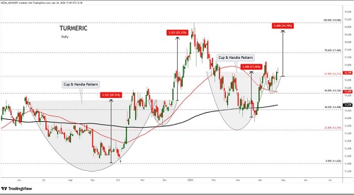 Turmeric trading range for the day is 15726-16346.
