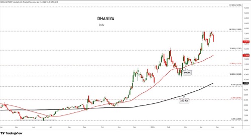 Dhaniya dropped on profit booking as arrivals in major hubs have accelerated after fiscal year-end activities in late March.