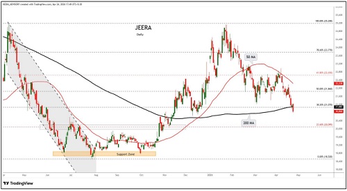 Jeera dropped as daily arrivals at the Unjha mandi have stabilized at high level, approx. 28,500 bags, creating a visible supply glut.