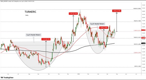 SELL TURMERIC MAY @ 16700 SL 17000 TGT 16400-16200. NCDEX