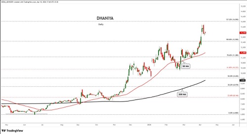 Dhaniya gains as new crop arrivals in Kota and Ramganj are currently lower than historical seasonal averages.