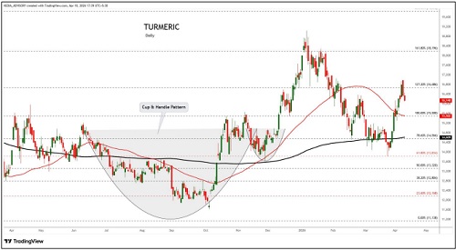 Turmeric dropped as amid increase in acreage due to favourable rains during the current sowing season.
